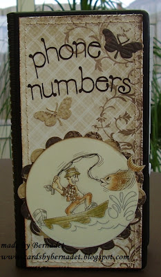 Ik had nog een oud telefoonboekje liggen, waar nodig nieuwe telefoonblaadjes in moesten, de oude waren al zoveel gebruikt en verkreukeld dat het niet meer leesbaar was. Enja toen ook gelijk maar de buitenkant van het mapje onder handen genomen. Wat maat betrof was tie precies goed voor de uitdaging van deze week.